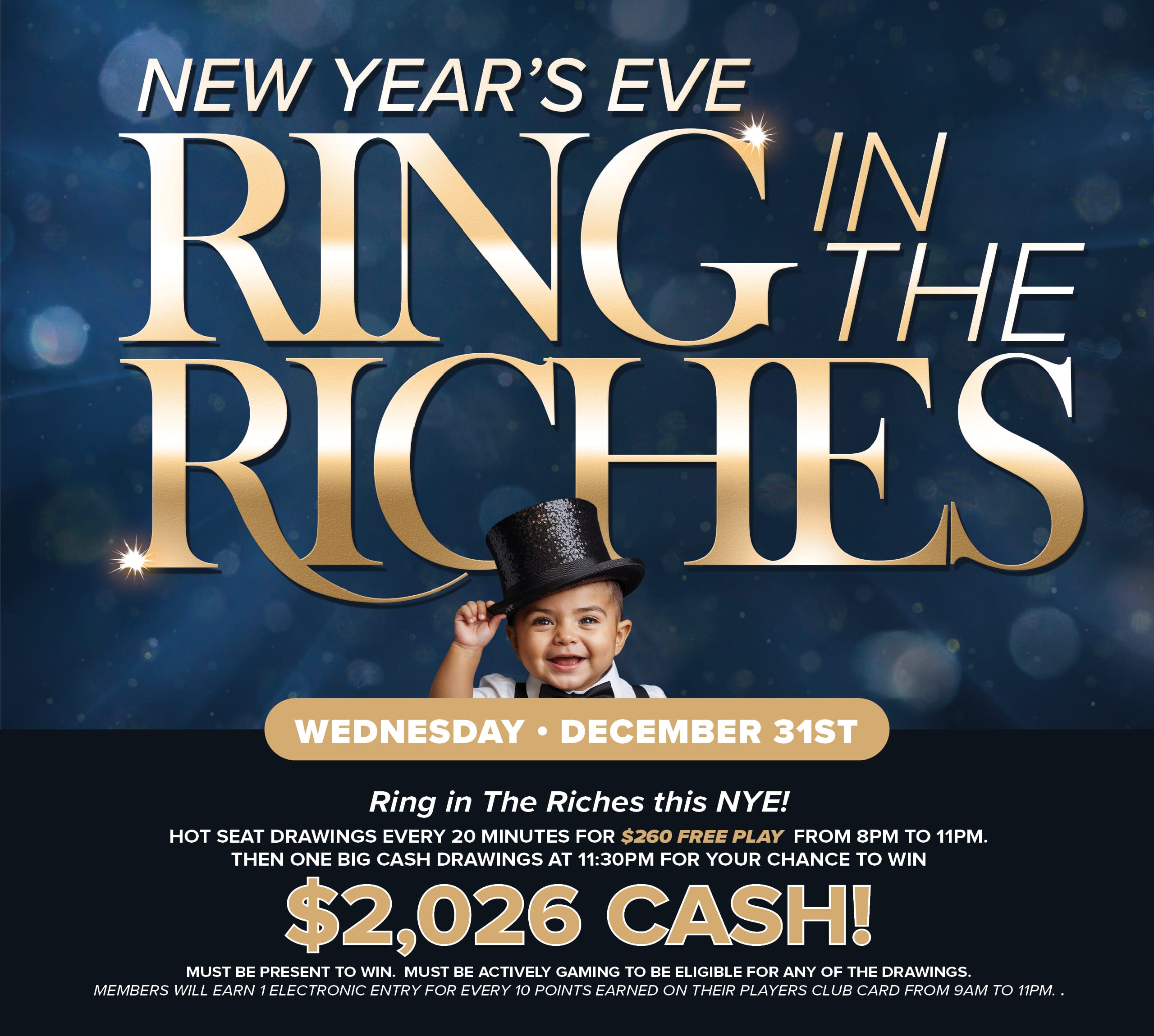 Get ready to celebrate the biggest night of the year—Gold River style! This New Year’s Eve, we’re turning up the excitement with hot seats, big cash, party favors, and a festive atmosphere perfect for welcoming 2026. Join us on Wednesday evening, December 31st, for a......